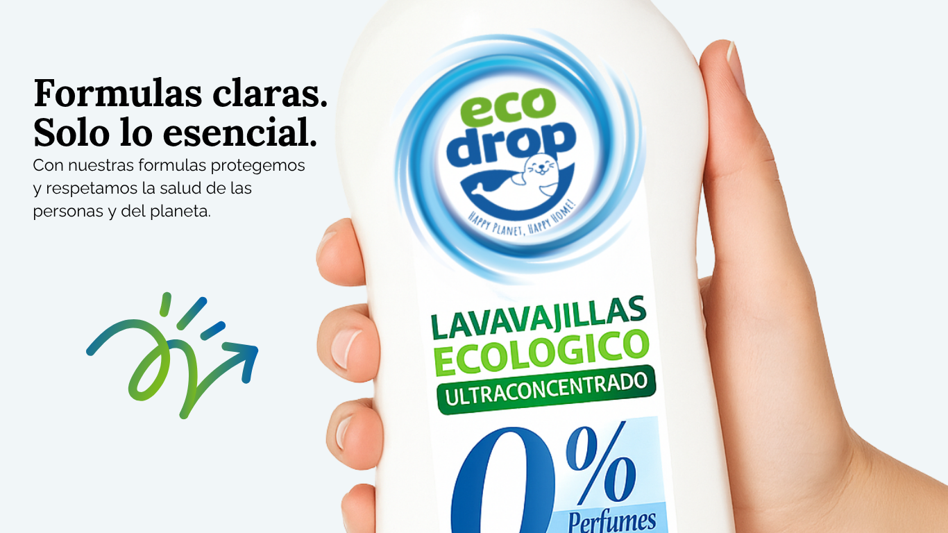 Lo que destaca en Ecodrop no es solo lo que incluyen, sino también lo que eliminan: colorantes innecesarios, perfumes sintéticos cargantes y sustancias irritantes. En su lugar, priorizan tensioactivos de origen vegetal, aromas suaves y biodegradabilidad real.