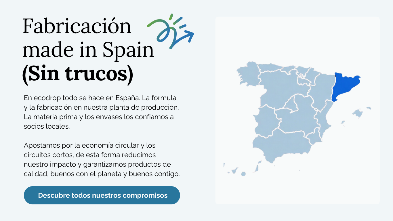 Un ejemplo claro es Ecodrop, una marca local que demuestra que la sostenibilidad no está reñida con la eficacia. Sus productos de limpieza, elaborados con ingredientes naturales y formatos responsables, compiten de tú a tú con las grandes compañías del sector… y ganan en honestidad. Limpian igual de bien —o incluso mejor—, pero lo hacen cuidando tu hogar, tu piel y el entorno.